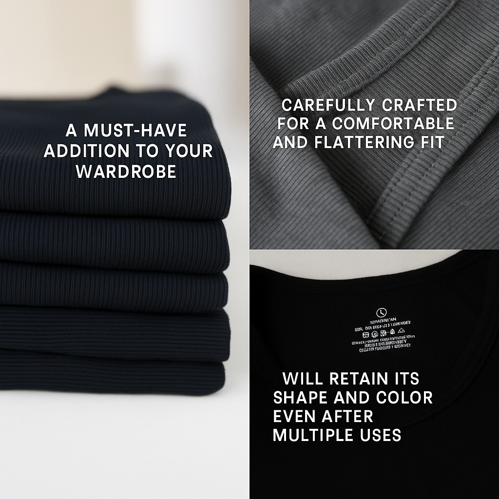 It means the fabric is thick, premium, and built to last. 340GSM = grams per square meter — aka the weight of the material. Most cheap tanks are around 150–180GSM (thin, clingy, and see-through). Ours is 340GSM with a bit of spandex for stretch — so it drapes clean, holds its shape, and doesn’t feel flimsy or tight.